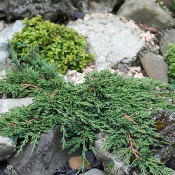 Можжевельник горизонтальный Панкейк - вечнозеленый карликовый сорт высотой до 10 см в диаметре 150 см. Хвоя чешуйчатая, мелкая, сизо-зеленая. Зимой становится бронзовой. Теневынослив, но лучше растет на солнечных местах. Предпочитает умеренно-сухие почвы с кислой или щелочной реакцией. Устойчив к низким температурам, городскому климату и вредным выбросам. Великолепный сорт для альпинариев, подпорных стенок и для различных хвойных композиций.