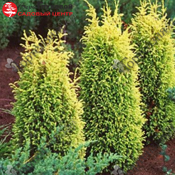 Можжевельник обыкновенный  Голд Коне - вечнозеленый хвойный  кустарник,высотой до 2 м. Иимеет яркую золотисто-желтую хвою, что объясняет его название и популярность. Любит солнце, в тени хвоя теряет яркость окраски. Хорошо переносит обрезку. Неприхотлив к почве. Отлично переносит морозы, но побеги лучше всего связать зимой, чтобы они не стали прогибаться. В жаркую погоду нуждается в постоянном уходе и поливе, во избежание появления солнечных ожогов нужно затенять.