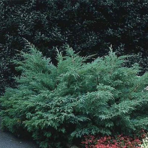 Можжевельник средний  'Хетци' - раскидистый быстрорастущий кустарник с распростертыми ветвями, достигает 1,5-2 м в высоту, 3 м в диаметре. Годовой прирост 20-25 см. Хвоя чешуйчатая, зеленовато-синяя. Плоды - многочисленные серо-голубые шишкоягоды. Зимостоек, относительно устойчив к недостатку влаги.