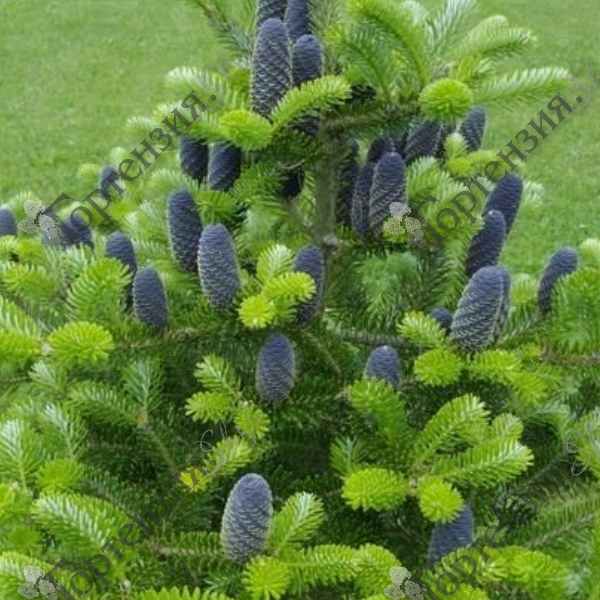 Пихта корейская (Abies Koreana) - небольшое хвойное дерево, высота которого в средней полосе России редко превышает 4 м. Растет очень медленно, годовой прирост около 5 см в год. Имеет правильную коническую форму кроны. Хвоя у пихты мягкая, короткая, 1-2 см длинной, темно-зеленая, блестящая. С обратной стороны, хвоинки имеют характерную особенность - 2 светлые полоски. Очень декоративна с появлением фиолетово-пурпурных шишек, которые в отличии от шишек ели, растут вверх и распадаются прямо на дереве, оставляя после себя лишь стержень. Особенно много шишек появляется у пихты с семилетнего возраста. Любит солнечные места, однако в молодом возрасте может страдать от сильного солнца. Предпочитает влажные дренированные почвы, не потерпит затопления. К составу почвы пихта не требовательна, но особенно хорошо растет на гумусных почвах. Морозостойка и ветроустойчива. Доживает корейская пихта до 150-летнего возраста.