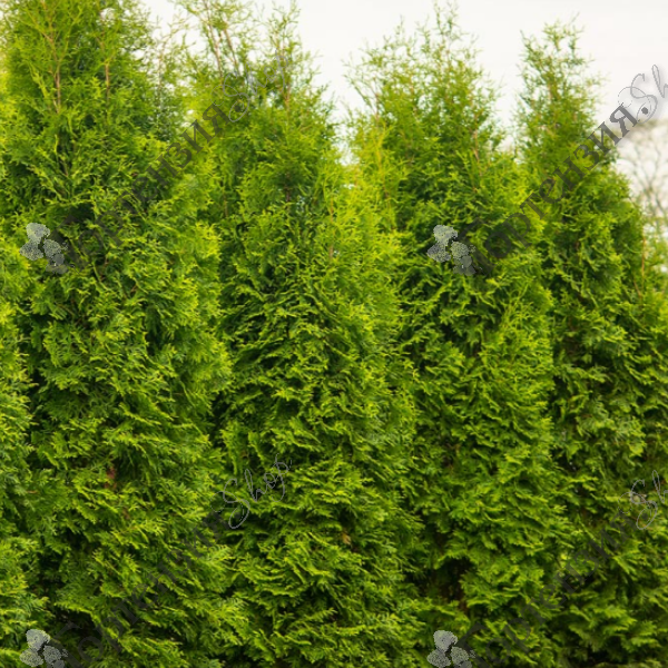 Туя западная 'Кинг оф Брабант' -  пирамидальное, вечнозеленое, хвойное, дерево. Крона очень компактная и плотная. Хвоя чешуевидная, зеленая. Все молодые побеги растут вертикально. Почва дренированная, влажная. Морозостойкость -34С. Рекомендуется для живых изгородей.