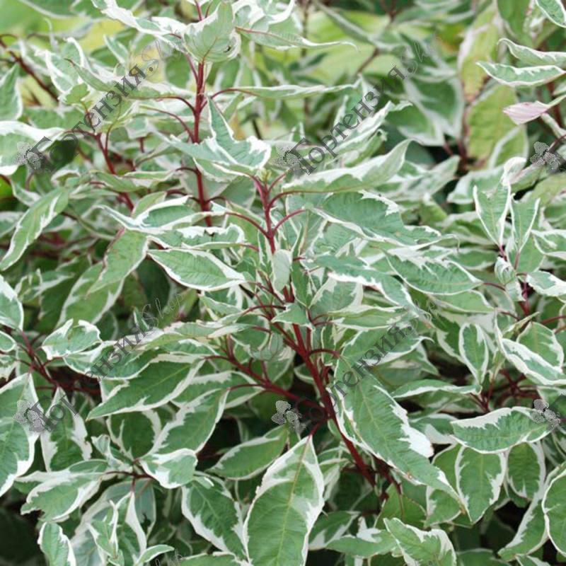 Дерен белый Айвори Хало (Cornus alba `Ivory Halo`-очень эффектный сорт высотой до 1,5 м. Побеги вертикальные, прочные, красно-коричневого или насыщенного кораллового цвета, особенно в зимний период. Листья овальные, бело-зеленого цвета, пестрые, с обширными белыми пятнами. Осенью окрашиваются в красно-коричневый цвет. Цветет желтоватыми цветками. Быстрорастущий.Теневынослив, но предпочитает солнечные места. Не требователен к плодородию почвы, но предпочитает влажные, дренированные почвы. Не терпит застоя влаги. Зимостойкость очень высокая. Хорошо переносит условия города. Устойчив к повреждению болезнями и вредителями. Ярко окрашены только однолетние и двухлетние побеги, поэтому для сохранения декоративного эффекта рекомендуется омолаживающая стрижка.
