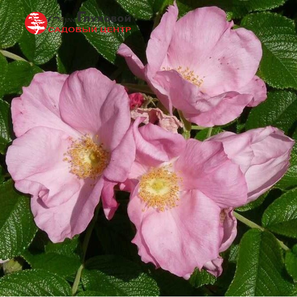 Кустарник высотой до 1,0-1,2 м. Крона густая, ветвистая, раскидистая, достигает диаметра до 1,5 м. Побеги густо покрыты шиловидными шипами и щетинками. Листья довольно крупные, непарноперистые, жесткие, морщинистые, блестящие, молодые листья - ярко-зеленые, летом - зеленые, осенью - желтые или бронзовые, иногда с оттенками красного цвета. Цветение обильное, с конца мая - в июне, продолжительное, в более слабой степени продолжается до морозов. Цветки немахровые, чашевидные или блюдцевидные, 5-8 см в диаметре, с пучком золотистых тычинок в центре и приятным ароматом. Новые, распустившиеся цветки ярко-розовые, позднее выгорают до чистого бледно-розового цвета. Цветение происходит как на прошлогодних, так и на молодых побегах. Благодаря этому на кустах в конце лета одновременно имеются плоды и цветы. Плоды шаровидные, крупные, оранжево-красные, мясистые, очень декоративные. Плодоношение обильное