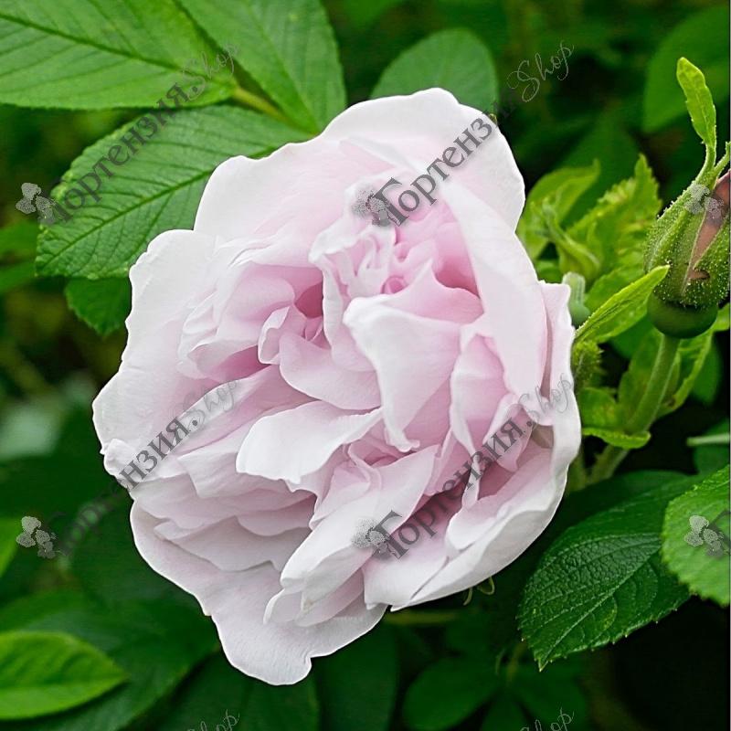 Куст раскидистый. Высота взрослого растения: 0,9-1 м. Диаметр кроны: 1-1,2м. Листья крупные, жесткие, морщинистые, зеленые, матовые. Цветки полумахровые, 6-7см в диаметре, белые с розовым или сиреневым оттенком, с приятным ароматом. Плоды  алые, крупные, мясистые, съедобные. Зимостойкость высокая. Цветение: обильное в июне, продолжается волнами до морозов. Светолюбива, выносит легкое затенение. Почвы предпочитает плодородные, дренированные, увлажненные.