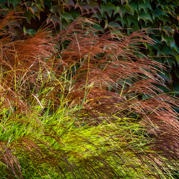 Мискантус китайский Фернер Остен многолетнее злаковое растение высотой до 2 м. Листья линейные, длинные, шершавые зеленые, осенью желтые, шириной до 1,5 см. Соцветия темно красные, распустившиеся колоски серебристо-розовые. Цветет с сентября по октябрь. Стебли прямостоящие. Место посадки солнечное. Почвы плодородные рыхлые без застоя воды. Высаживают в прибрежных зонах, миксбордерах, рокарии одиночно и группами, используется во флористике. Морозостойкость до 34С