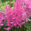 Астильба Арендса  'Глория Пурпурея цветки насыщенно-розовые, прицветники очень плотные и эффектные.Пушистые фиолетово-розовые соцветия высоко держатся на крепких стеблях . Красивая листва, распускаясь, приобретает бронзовый оттенок, а летом становится зеленой. Это самый яркий из розовых астильб. Считается одним из самых ранних сортов. Хорошо растёт в тени и переносит влажные почвы.