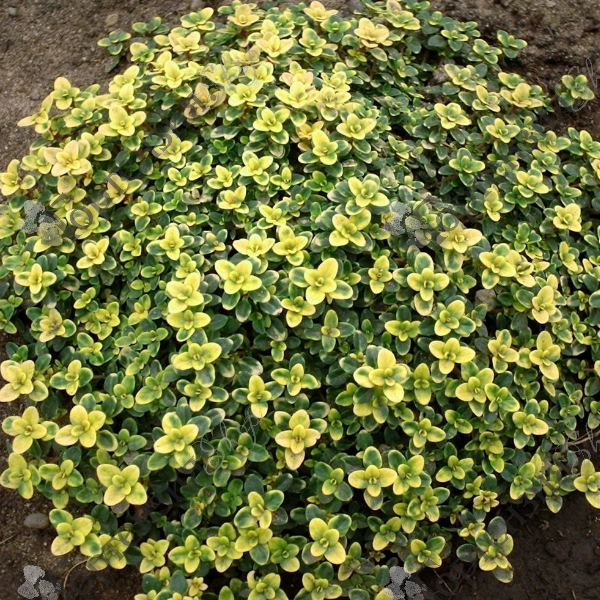 Тимьян лимоннопахнущий (Thymus citriodorus) 'Донне Валей' - высота 10-15 см. Пряно-ароматический почвопокровный полукустарничек.Во время цветения на листьях преобладает зеленый цвет, до и после цветения - желтый. Цветет в июне-июле. Для солнечных, жарких мест с сухими, хорошо дренированными, легкими, нейтральными или щелочными, плодородными почвами. Тимьян может служить прекрасным ковровым фоном в розарии. Тимьян можно использовать как почвопокровное растение, особенно среди вересков, эрик, луковичные растения.